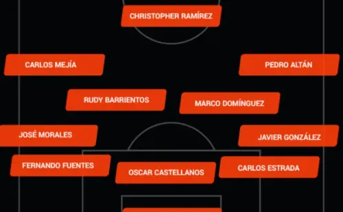 Este sería el posible 11 que ponga Rafael Loredo para el partido de hoy ante El Salvador:Kenderson Navarro; Javier González,Carlos Salvador Estrada, Oscar Castellanos,Fernando Fuentes,José Morales; Pedro Altán, Marco Domínguez, Rudy Barrientos,Carlos Mejía; Christopher Ramírez.