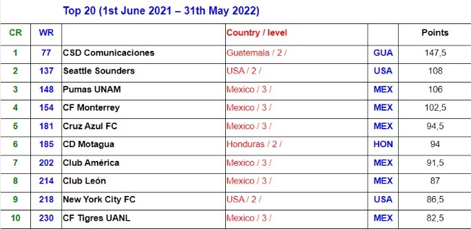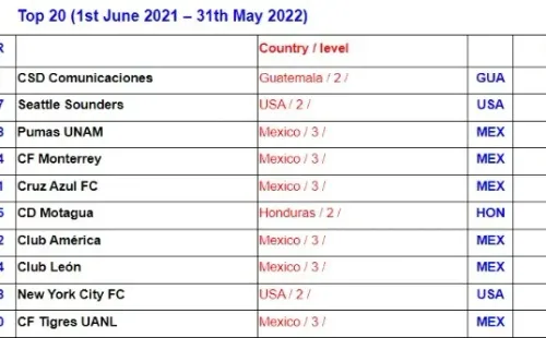 Desde enero del 2022 se dio a conocer esta clasificación y que ya ha causado bastante expectativa, pero en especial en el territorio guatemalteco, porque los cremas, que son uno de los más seguidos en dicho país, son los únicos de su nación que figuran en el ranking, pero también son los que están al tope a nivel de Concacaf.