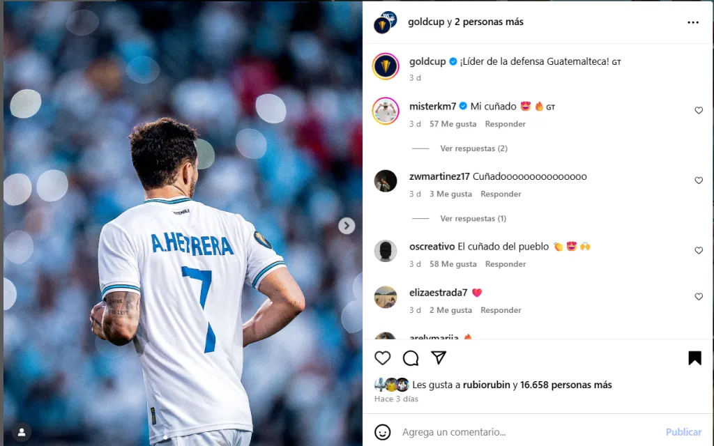A través de la cuenta de Instagram de la Copa Oro, la Concacaf escribió “líder de la defensa guatemalteca” para referirse a Aarón Herrera. Sin embargo, el chapín se opuso a este elogio, a pesar de haber agradecido.