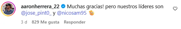 Luego de esta publicación que también replicó la Federación de Fútbol de Guatemala, Aaron Herrera comentó el posteo y se opuso a dicho mensaje: “Muchas gracias, pero nuestros líderes son José Pinto y Nicolás Samayoa“.
