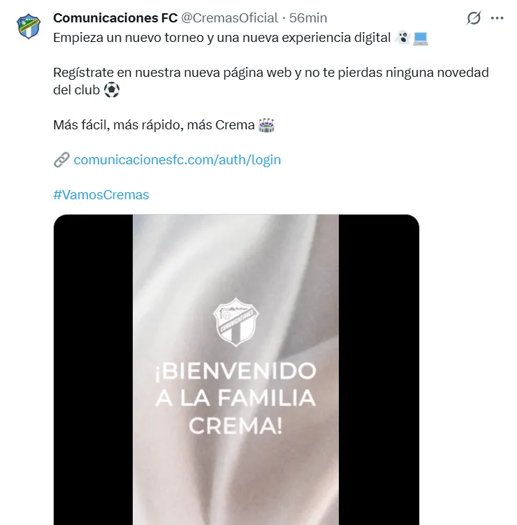 “Empieza un nuevo torneo y una nueva experiencia digital. Regístrate en nuestra nueva página web y no te pierdas ninguna novedad del club. Más fácil, más rápido, más Crema”, redactó el club en sus plataformas oficiales.