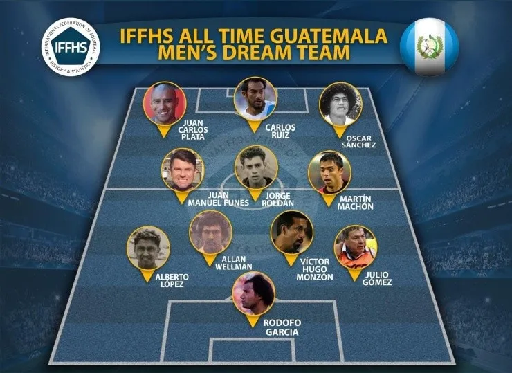 Estos fueron los 11 mejores jugadores guatemaltecos según la IFFHS: Rodolfo “Nixón” García; Julio Gómez, Víctor Hugo Monzón, Allan Wellman, Alberto López Oliva; Martín Machón, Jorge Roldán, Juan Manel Funes; Oscar Sánchez, Carlos Ruiz y Juan Carlos Plata.