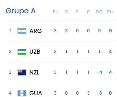 Finalizó la tercera jornada del Grupo A del Mundial Sub-20 que integra la Selección de Guatemala. Se disputaron los dos encuentros correspondientes a esta zona: chapines contra Uzbekistán y Nueva Zelanda versus Argentina.