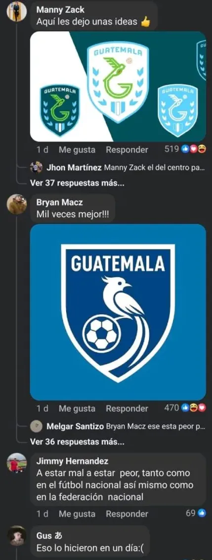 Incluso algunos seguidores se atrevieron a poner varias propuestas de diseños hechos por inteligencia artificial, que según ellos son mejores que el nuevo escudo del combinado guatemalteco.