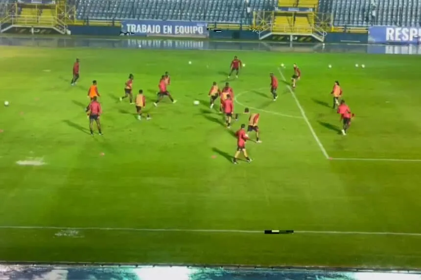 La gramilla de la cancha guatemalteca se vio llena de charcos y se generó lodo tras las lluvias de este miércoles, por lo que tuvo sus consecuencias y se teme que ahora en el partido esto afecte el desempeño de los futbolistas.
