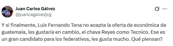 Ante este escenario, desde la federación guatemalteca ya analizan un reemplazante en caso de que Tena no acepte la oferta económica. El elegido por los federativos es Salvador Reyes, asistente técnico y mano derecha del técnico mexicano.
