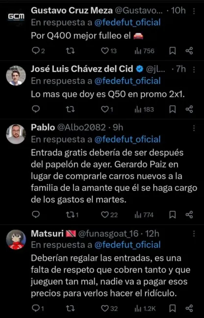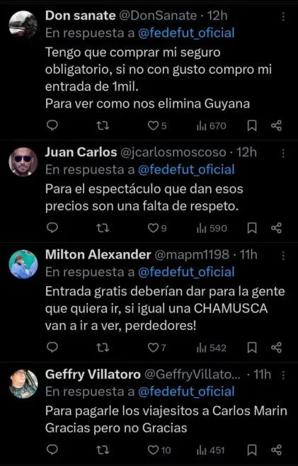 Inmediatamente las respuestas no se hicieron esperar y se comenzaron a generar comentarios en los que se reclamó la pérdida del juego ante Guyana, en especial porque los precios son más elevados de los acostumbrado.