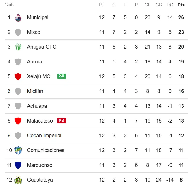 Así está la tabla de posiciones de la Liga Nacional de Guatemala tras la derrota de Municipal y la victoria de Comunicaciones