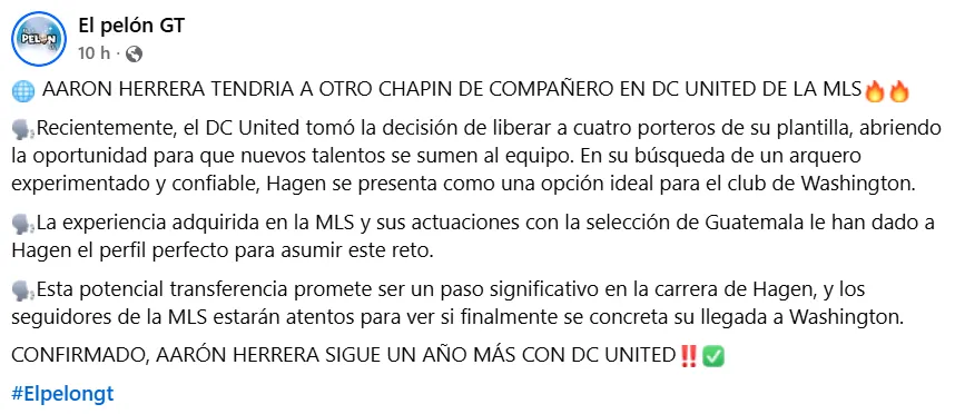 Además, necesitan a un arquero experimentado y confiable, por lo que Hagen se presentó como una opción ideal para el club de Washington. Lo ven como una de las contrataciones ideales, tanto por lo hecho en la MLS como en Guatemala.