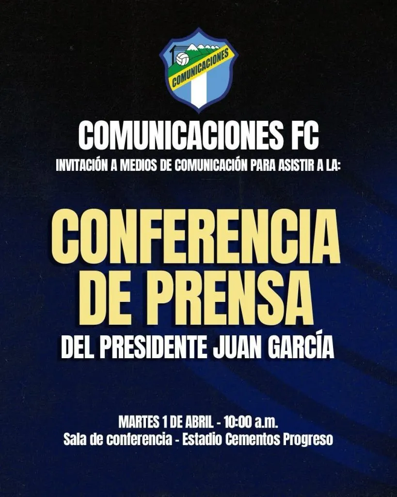 En medio del enojo generalizado de los aficionados, este lunes Comunicaciones emitió un comunicado, a través de su equipo de prensa, en el que llamaba a los medios de comunicación a una conferencia encabezada por el presidente Juan García.