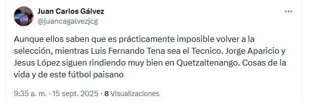 Chucho López vistió la camisola chapina por última vez en enero de 2024. Fue en el amistoso contra Islandia, el cual terminó en derrota por 1-0. Aparicio, por su parte, tuvo su último partido ante El Salvador en julio de 2024 en el que fue capitán. Curiosamente, después no volvería a ser llamado por el Profe Tena.
