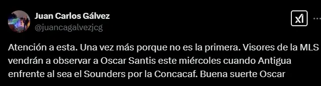 El delantero chapín ya fue visto por dichos visores de la MLS y este miércoles volverá a ser analizado por el duelo de la Copa de Campeones Concacaf. Según la información del periodista Juan Carlos Gálvez, el partido de Antigua ante Seattle Sounders será en el que vendrán a observarlo nuevamente.