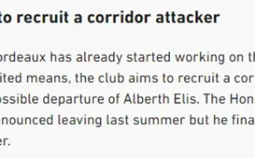 ”A pesar de los recursos limitados, el club tiene como objetivo contratar a un delantero veloz para compensar la posible salida de Alberth Elis”, resaltó en una de sus líneas el medio de comunicación francés, que afirma que se haría la incorporación en el mercado de trasferencias invernal.