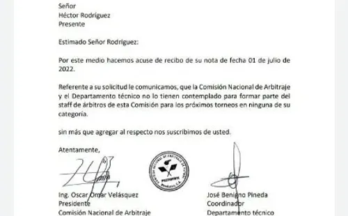 LaComisión Nacional de Arbitraje (CNA) tomó la decisión de imponer una fuerte sanción al colegiado Héctor Rodríguez, luego que incumpliera con el reglamento interno antes de finalizar la primera vuelta del Torneo Clausura 2022, por lo que estará lejos de las canchas por un buen tiempo mientras cumple con su castigo.