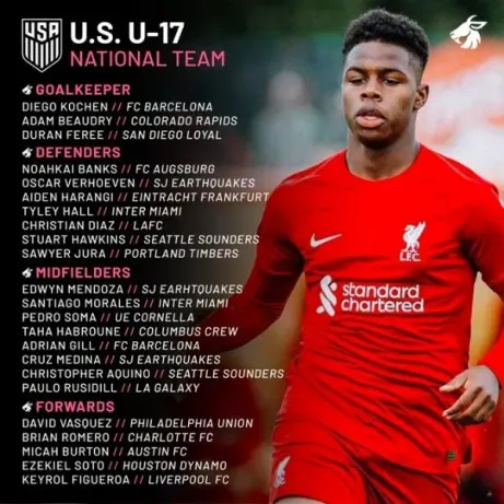 La Selección de Estados Unidos dio a conocer su lista de convocados para el Campeonato Sub-17 de la Concacaf, que se disputará la próxima semana en Guatemala y donde destacó la presencia del atacante hondureño-norteamericano Keyrol Figueroa quien podría ser rival de la H.