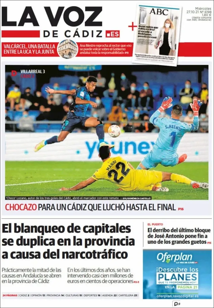 Anthony Lozano ha vivido una jornada que le será imposible de olvidar. Por la undécima fecha de LaLiga de España, se destapó con un hat-trick contra el Villarreal en el Estadio de la Cerámica, en lo que terminó siendo un agridulce empate 3-3 para el Cádiz (con dos goles de los dueños de casa sobre los últimos diez minutos).
