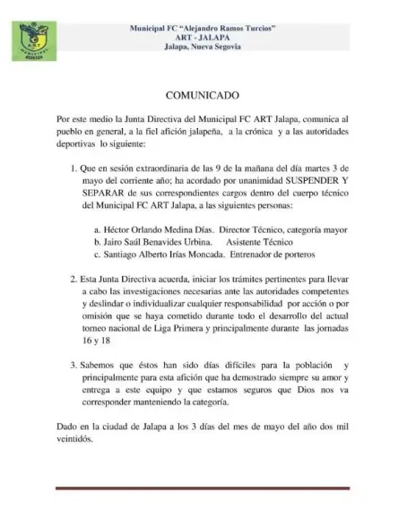 Ante esto, la liga tomó la decisión de sancionar a Jalapa, al quitarle cuatro puntos, que los dejó sin opciones de estar en la etapa final, además, lo más grave fue que el equipo cayó a la zona del repechaje por la permanencia y arriesga con perder la categoría.