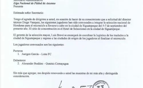 En el listado que se di a conocer este viernes, destacan dos nombres de la Liga de Ascenso, siendo estos el portero Juergen García que es parte del Lone FC y el delantero Alexander Bodeen que milita para el Genésis Comayagua, repitiendo la fórmula del anterior llamado cuando estuvo Francisco Martínez.
