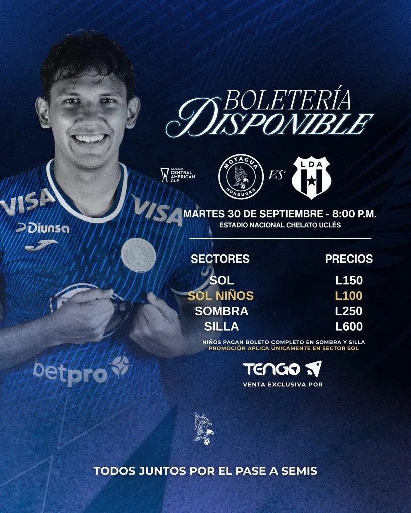 Y es que los precios confirmados por Motagua para el partido contra Alajuelense son: sol – 150, sombra – 250 y silla – 600 lempiras.