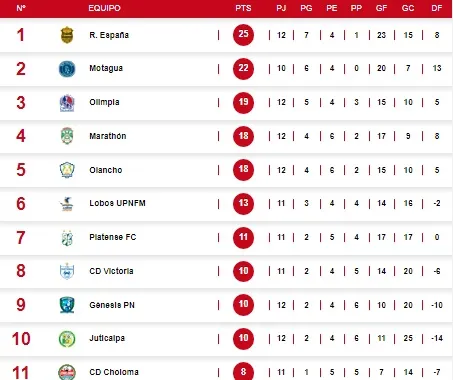 Tabla de posiciones del Clausura 2026 de la Liga Nacional de Honduras