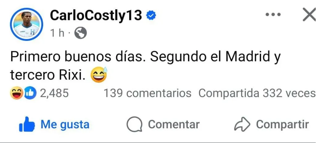 “Primero buenos días. Segundo el Madrid y tercero Rixi”, escribió en su rede social de Facebook, levantando una gran polémica y recibiendo respuestas de los aficionados.