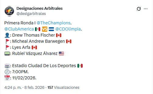 La Concacaf hizo oficial la cuarteta arbitral del juego de vuelta de la Concachampions 2026 entre América y Olimpia que se disputará en la Ciudad de México.