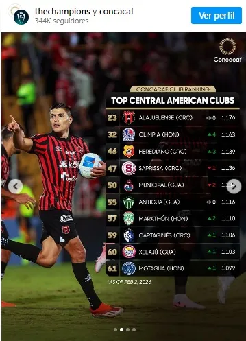 Esto por debajo de Olimpia (puesto 32) Marathón (puesto 57) y Motagua (puesto 61), estos dos últimos ni están clasificados a la Concachampions 2026.