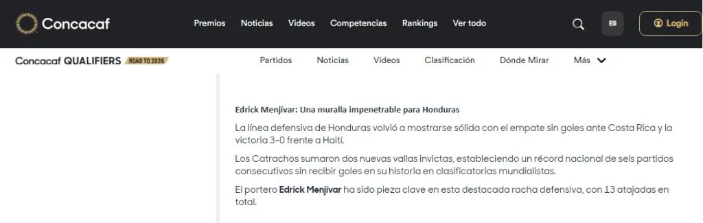 En la página oficial de Concacaf resaltaron mucho el trabajo de los dirigidos por Reinaldo Rueda, eso sí, destacaron a un jugador que está sorprendiendo a propios y extraños.