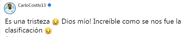 “Es una tristeza Dios mío. Increíble cómo se nos fue la clasificación”, dijo Carlo Costly en sus redes sociales, este fue el más blandito de todos.
