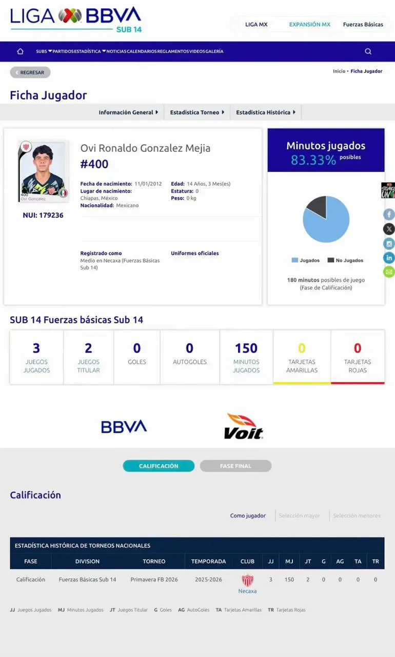 Se trata de Ovi Ronaldo González Mejía. El extremo derecho juega para el Necaxa Sub-14 de México y que desde las oficinas de la Federación de Fútbol de Honduras (FFH) han comenzado a tenerlo en el radar.