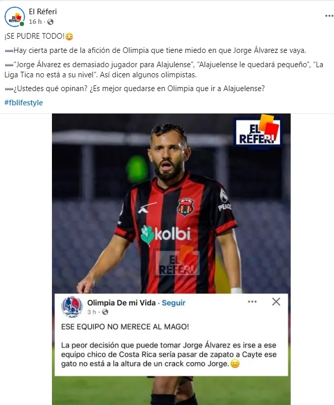 Eso ha levantado un miedo en cierto sector de la afición de Olimpia, ya que no quieren que Jorge Álvarez se vaya y más a reforzar un rival directo de Centroamérica.