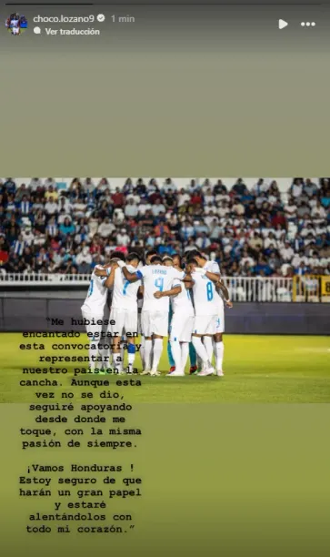 “¡Vamos Honduras! Estoy seguro de que harán un gran papel y estaré alentándolos con todo mi corazón”, agregó el Choco en una historia publicada en Instagram, acompañado de una foto de grupo de los catrachos.