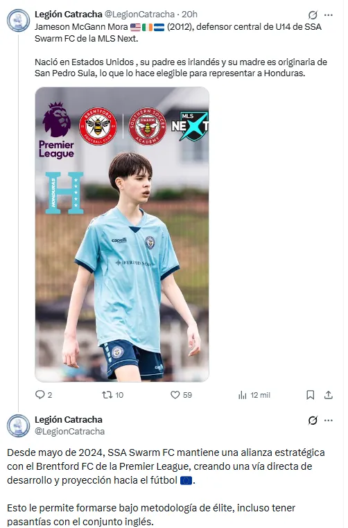 “Desde mayo de 2024, SSA Swarm FC mantiene una alianza estratégica con el Brentford FC de la Premier League, creando una vía directa de desarrollo y proyección hacia el fútbol”, informó Legión Catracha en su cuenta de X.