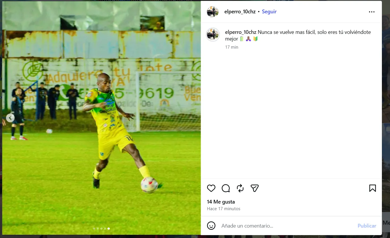 Luego de la derrota, el exjugador de Antigua FC reaccionó con un corto mensaje que acompañó con una serie de fotografías del encuentro. “Nunca se vuelve más fácil, solo eres tú volviéndote mejor”, escribió Chávez en su cuenta de Instagram.