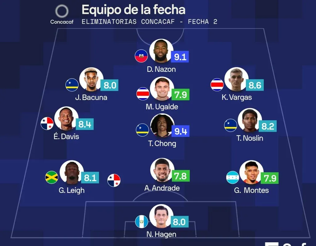 El equipo de la Fecha está conformado por: Nicholas Hagen (Guatemala), Andrés Andrade (Panamá), Greg Leigh (Jamaica), Getsel Montes (Honduras), Tyrese Noslin (Curazao), Tahith Chong (Curazao), Erick Davis (Panamá), Juninho Bacuna (Curazao), Manfred Ugalde (Costa Rica), Kenneth Vargas (Costa Rica) y Duckens Nazon (Haití).