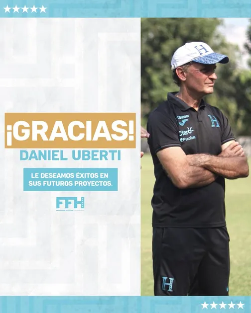 “La Federación de Honduras agradece al Profesor Daniel Uberti por el tiempo que compartió su expertís con nosotros. Deseamos éxitos en sus próximos proyectos profesionales”, anunció la FFH en sus redes sociales.