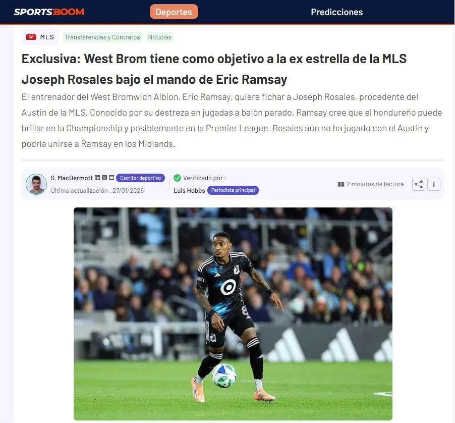 Sportsboom ha dado la noticia que cambia todo para Joseph Rosales, el hondureño que recién llegó al Austin FC de la MLS procedente del Minnesota United.
