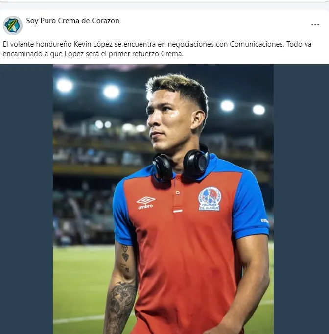 “El volante hondureño Kevin López se encuentra en negociaciones con Comunicaciones. Todo va encaminado a que López será el primer refuerzo Crema”.