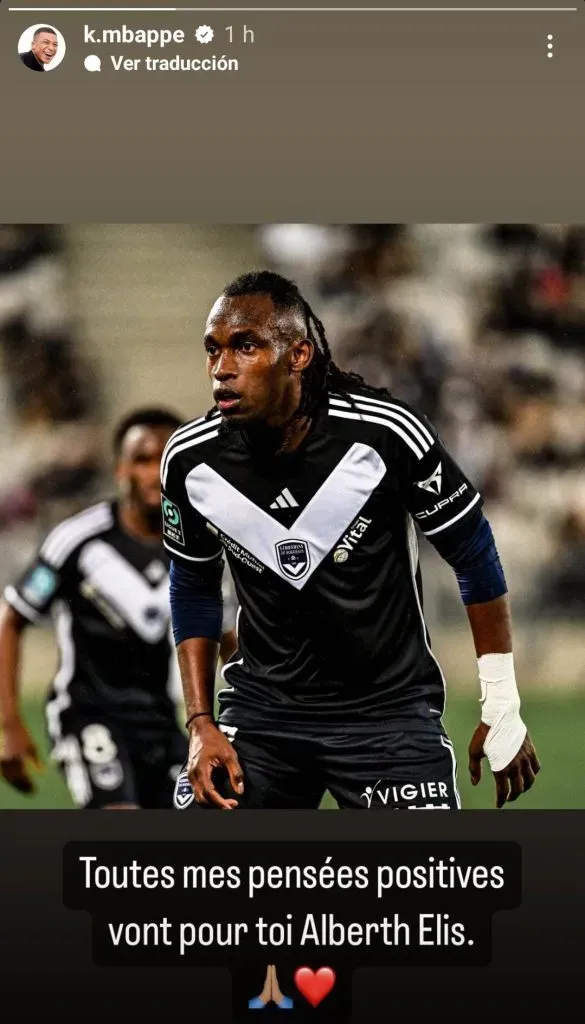 A través de su cuenta oficial de Instagram y con una imagen del centroamericano, Kylian Mbappé dejó el siguiente mensaje: “Todos mis pensamientos positivos van para ti, Albert Elis“, sentenció el delantero francés.