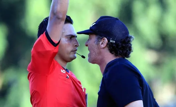 Troglio reclamó fuertemente las decisiones del referee que no dudó en expulsar al entrenador.