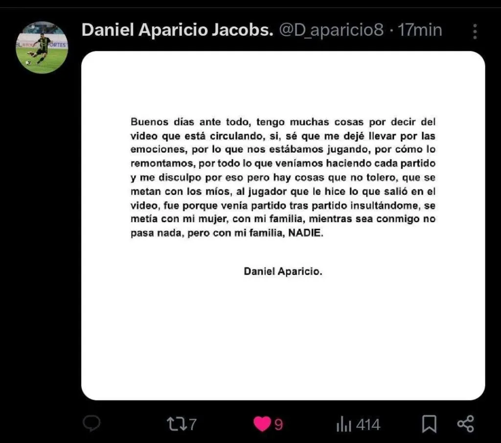 Daniel Aparicio lanza comunicado tras el video