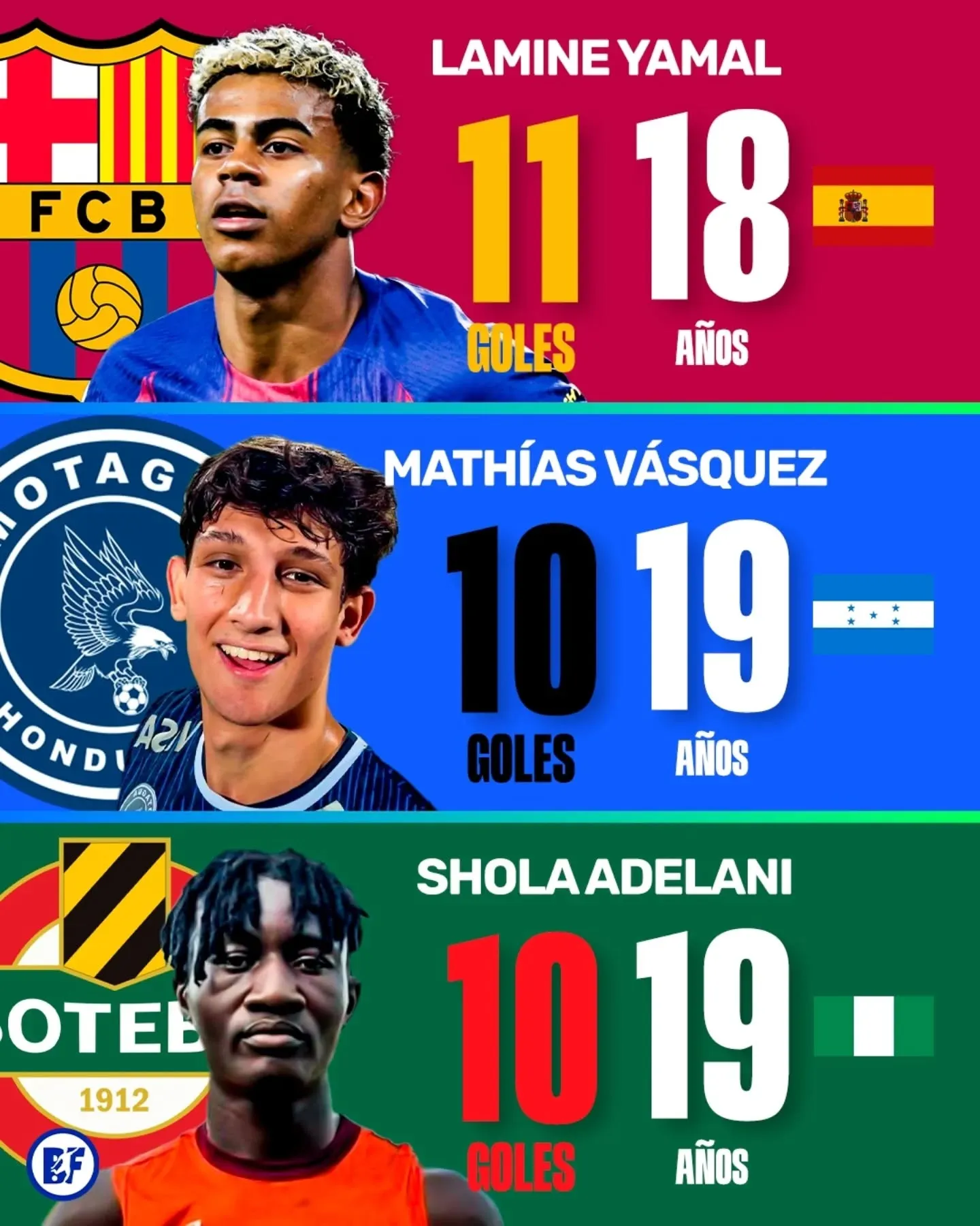 Mathías fue destacado junto a estrellas en ascenso como Lamine Yamal (18 años) que anotó 11 goles, Rayan (19 años) del Vasco da Gama que hizo 14 y Moises Paniagua (18 años) del Always Ready boliviano que marcó 14 dianas.