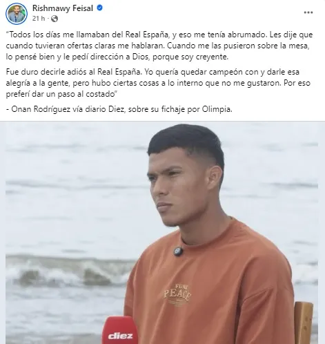 El propio Rodríguez ha dado declaraciones y ha contado cómo fue el proceso de su fichaje por Olimpia, dejando mal parado a Real España y su insistencia.