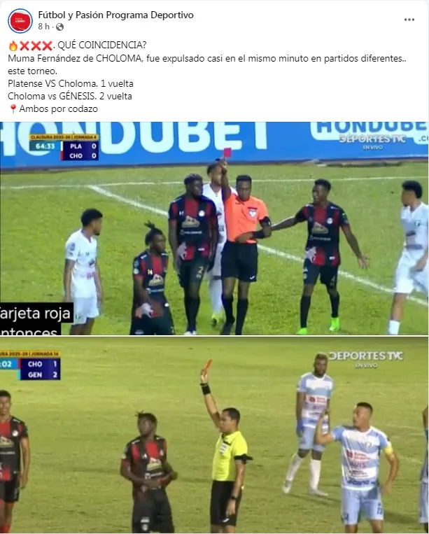 “Me encuentro molesto y triste por la situación que está viviendo el equipo. También estoy frustrado por lo que se está diciendo en redes sociales, porque da pena que quieran manchar mi nombre por cosas que ocurren en la cancha. Tuve la mala fortuna de que las dos expulsiones que he tenido en la liga fueron por jugadas similares, pero quiero dejar claro que no me presto para ese tipo de cosas (amaños). Incluso hablé con el jugador de Choloma para pedirle disculpas. Es feo que se hable de amaños de partidos, porque yo jamás me prestaría para algo así”.