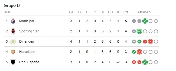 Clasificación del grupo B de la Copa Centroamericana