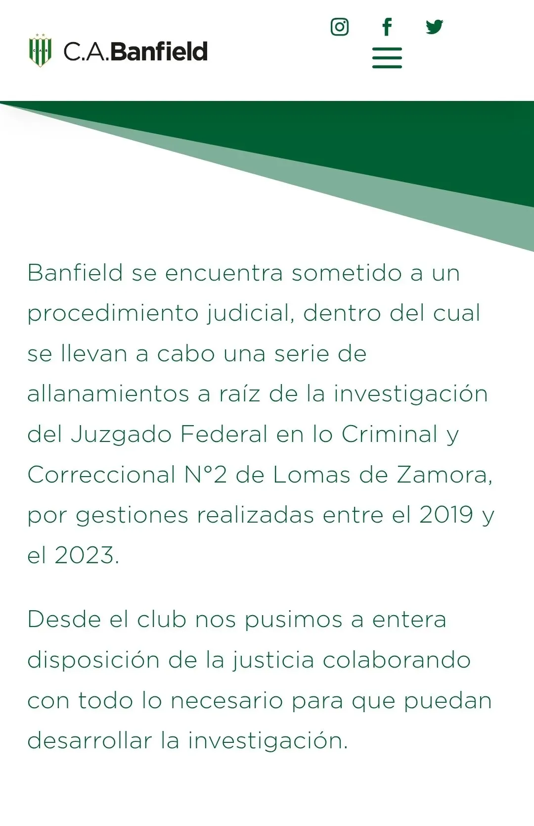 Desde el club nos pusimos a entera disposición de la justicia colaborando con todo lo necesario para que puedan desarrollar la investigación.