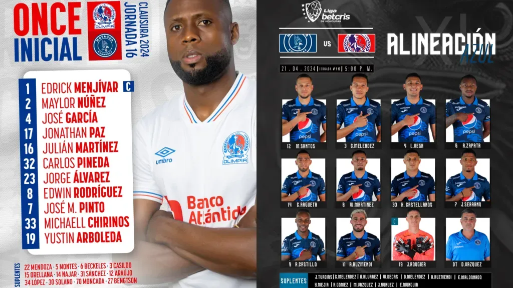 ¡Alineaciones confirmadas de Olimpia vs. Motagua para el clásico capitalino!