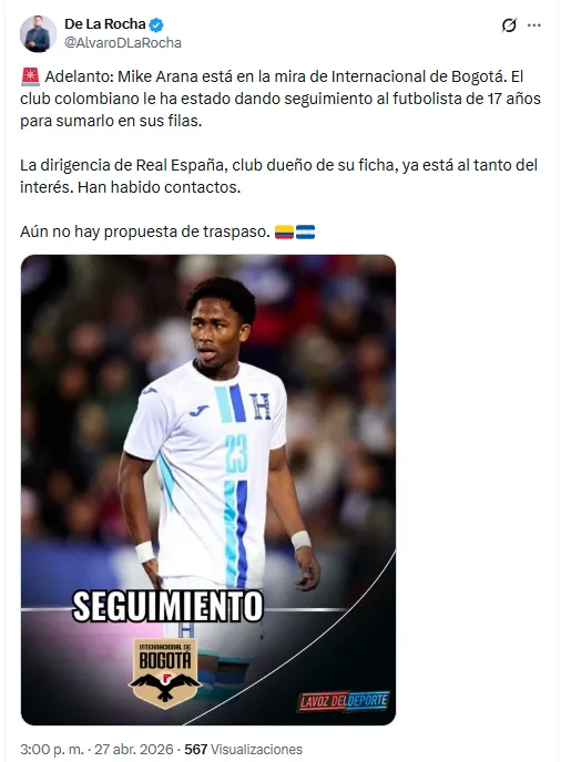 “La dirigencia de Real España, club dueño de su ficha, ya está al tanto del interés. Han habido contactos. Aún no hay propuesta de traspaso”, cerró.