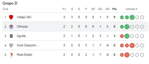 Tabla de posiciones del grupo D de la Copa Centroamericana