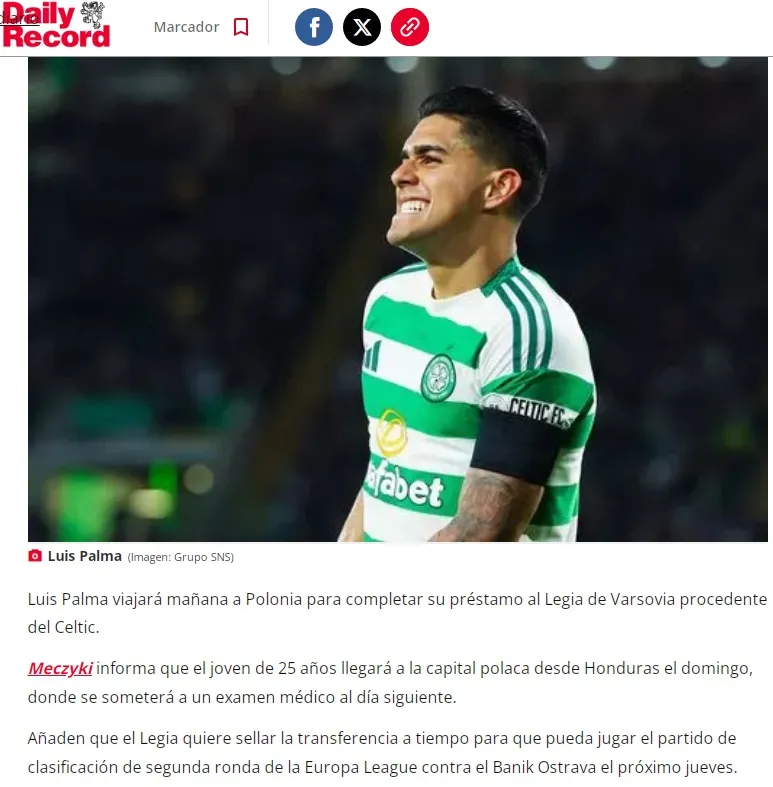 Todo nació con una publicación del prestigioso Daily Record Sport, que cumple con la información de que Luis Palma se va de Celtic a Polonia, pero no al equipo que todos ya conocemos: Lech Ponzan.